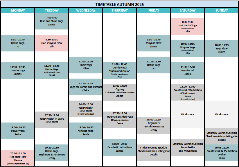 Please see our usual studio timetable below - scroll down the page for the booking scheduler.